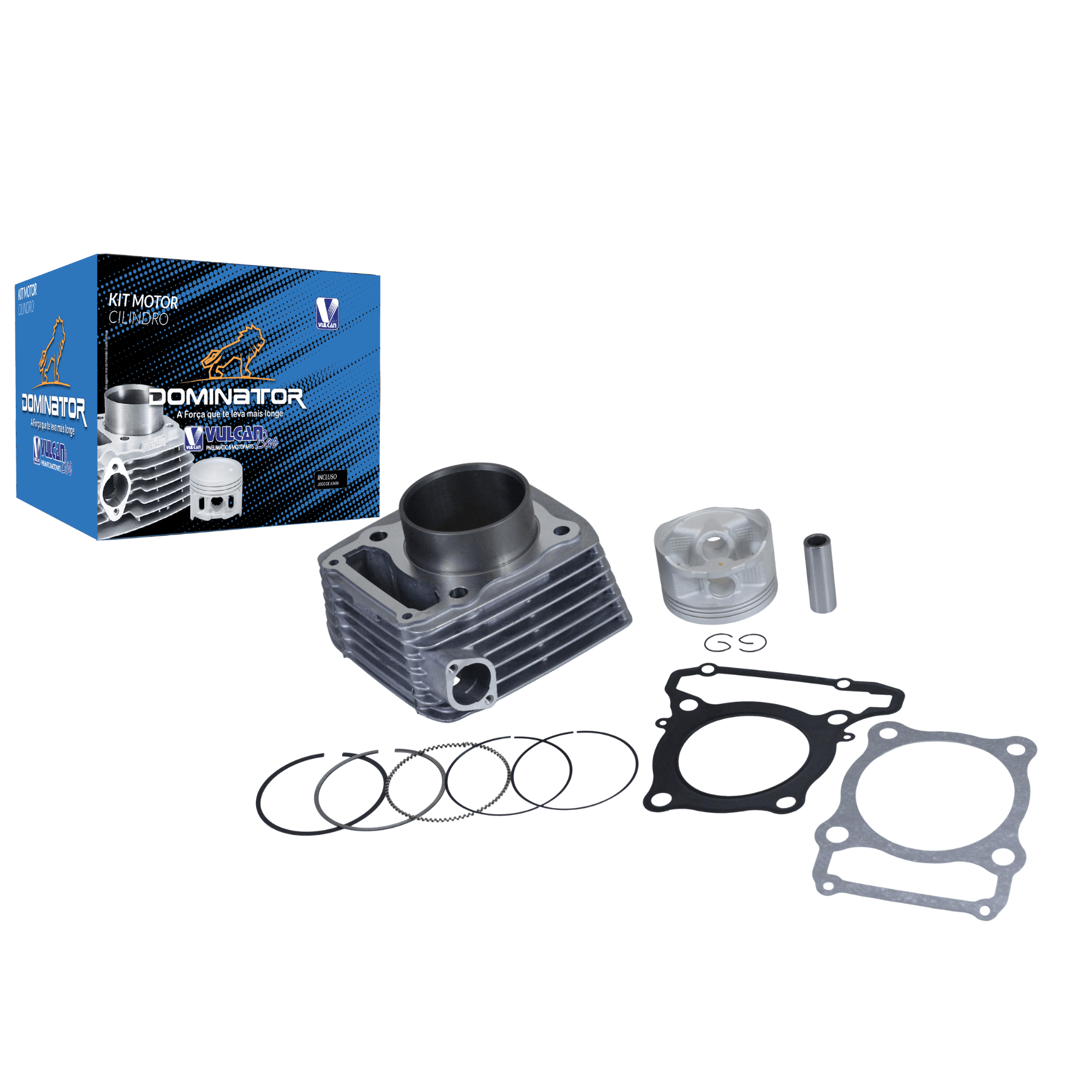 CONJUNTO CILINDRO-ÊMBOLO (PISTÃO), O KIT É COMPOSTO POR: CILINDRO DO MOTOR, JOGO DE ANÉIS, PISTÃO, PINO DO PISTÃO, TRAVA PINO PISTÃO, JUNTA DO CABEÇOTE E JUNTA DO CILINDRO. PART NUMBER COMPLEMENTAR: OEM 12100-KVK-900