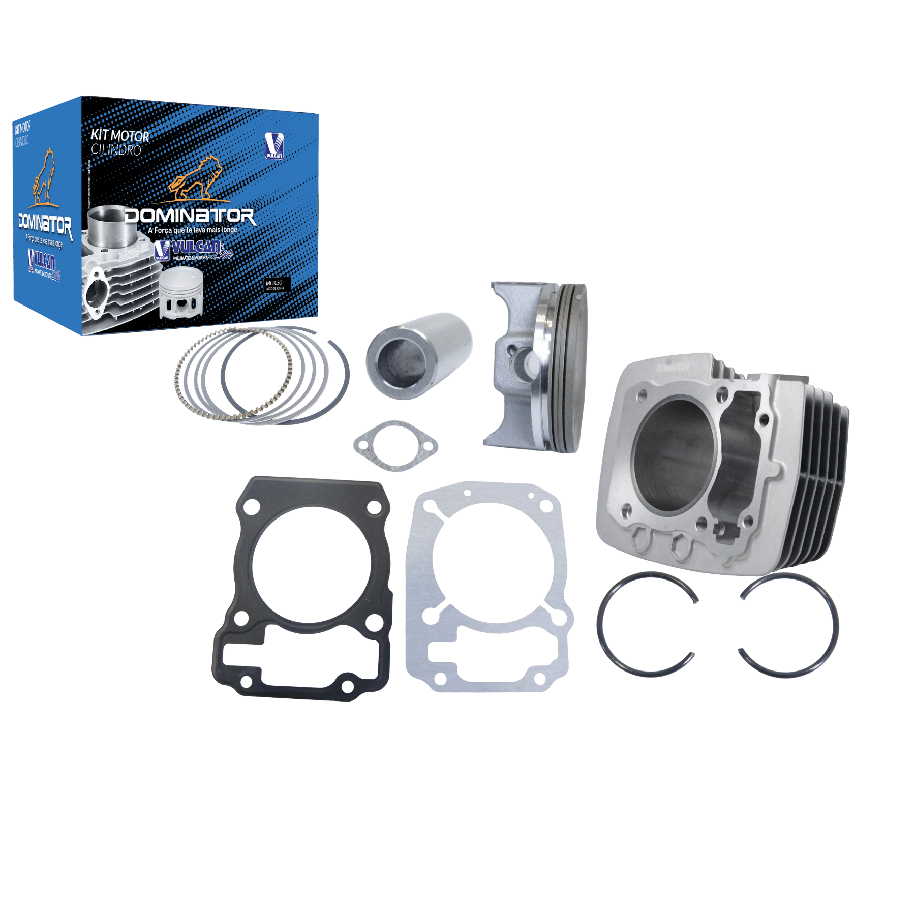 CONJUNTO CILINDRO-ÊMBOLO (PISTÃO), O KIT É COMPOSTO POR: CILINDRO DO MOTOR, JOGO DE ANÉIS, PISTÃO, PINO DO PISTÃO, TRAVA PINO PISTÃO, JUNTA DO CABEÇOTE E JUNTA DO CILINDRO. PART NUMBER COMPLEMENTAR: OEM 12100-KRM-220CC