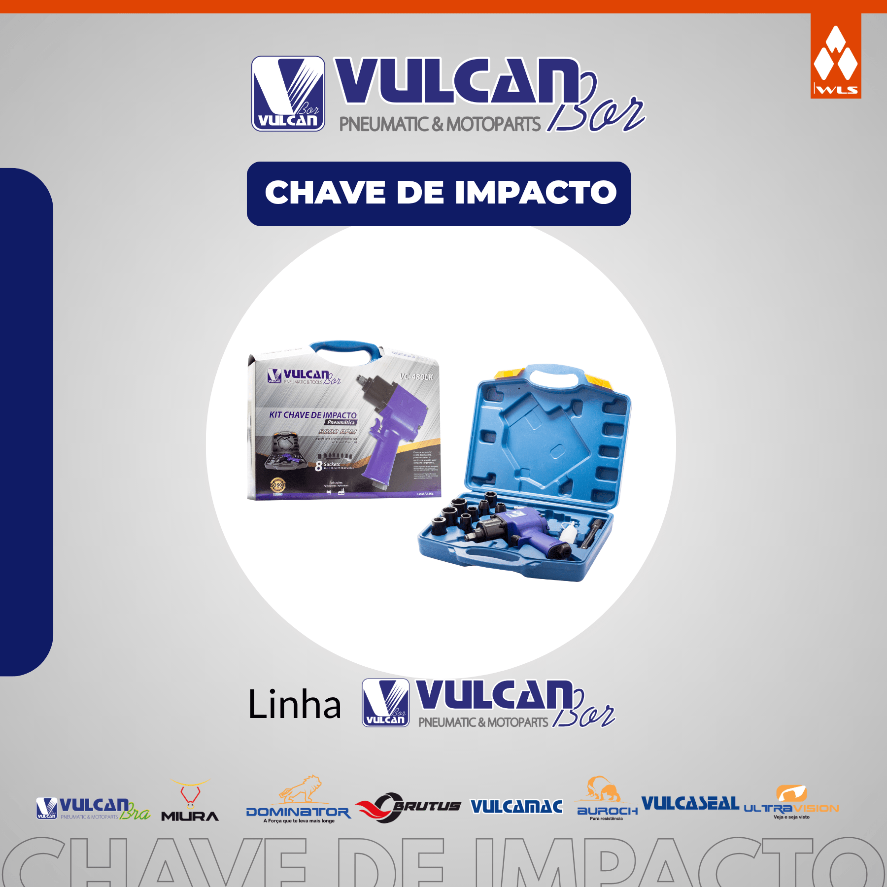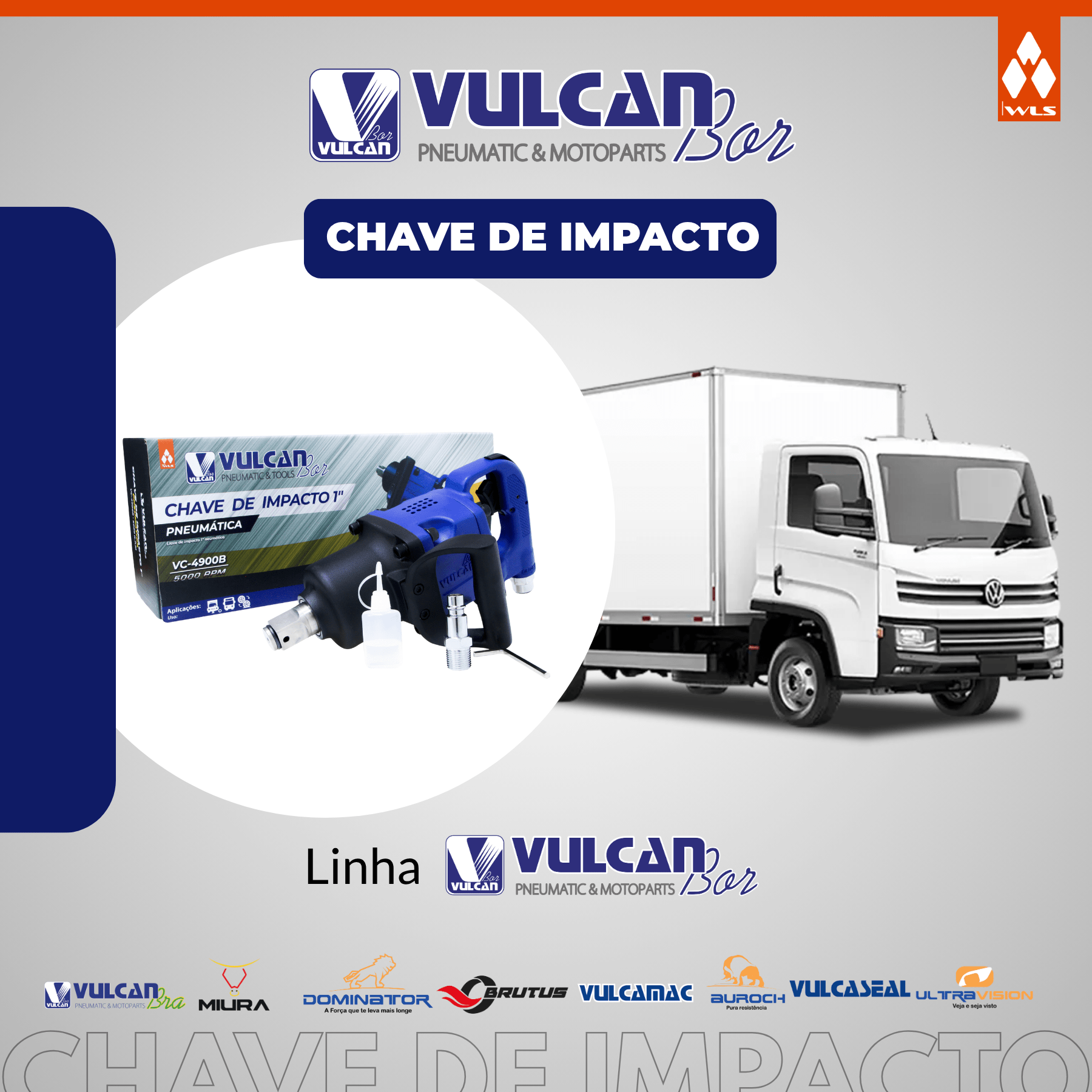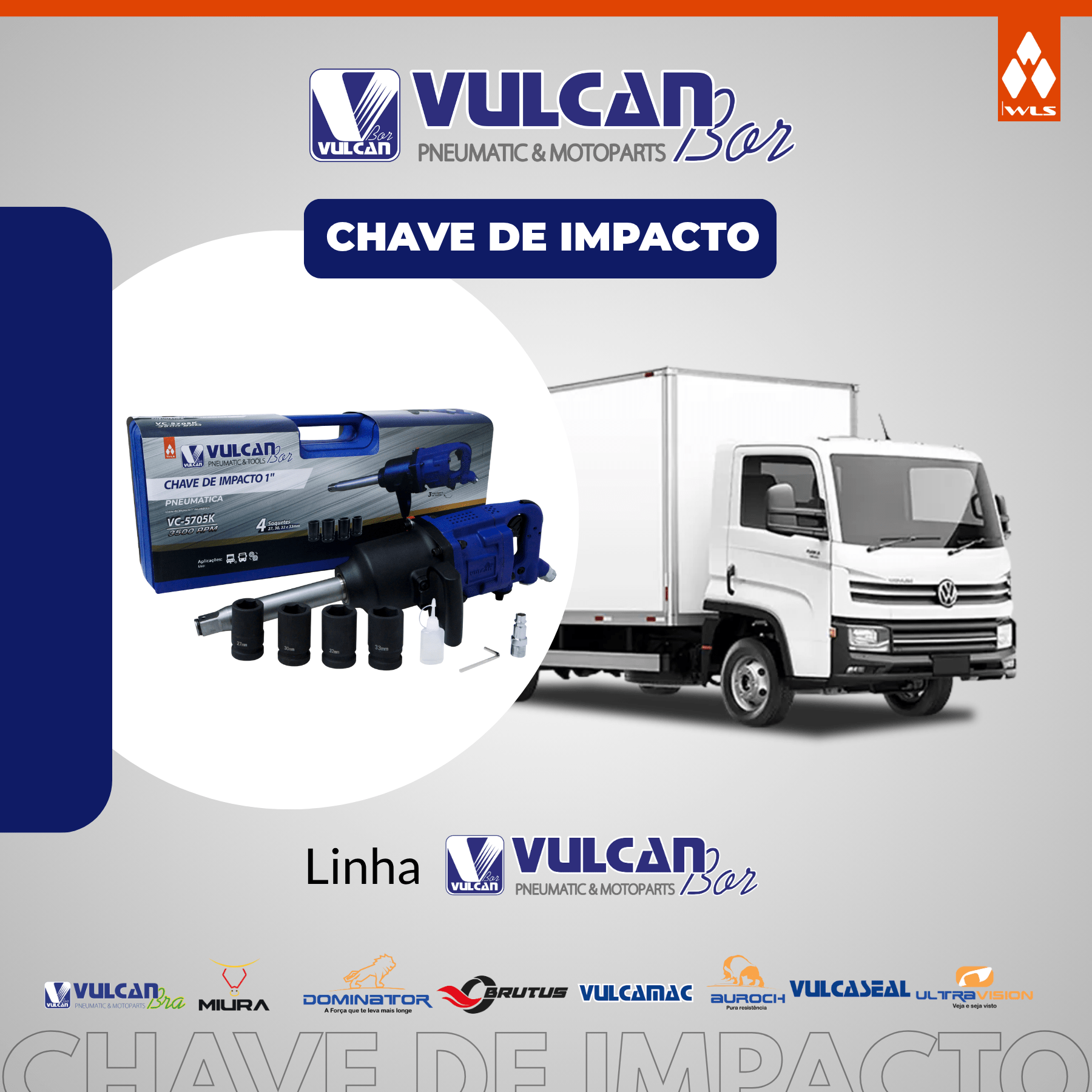CHAVE DE IMPACTO INDUSTRIAL EIXO LONGO 1" P/ CAMINHÕES E ÔNIBUS - C/ KIT DE SOQUETES - TORQUE 2600 NM