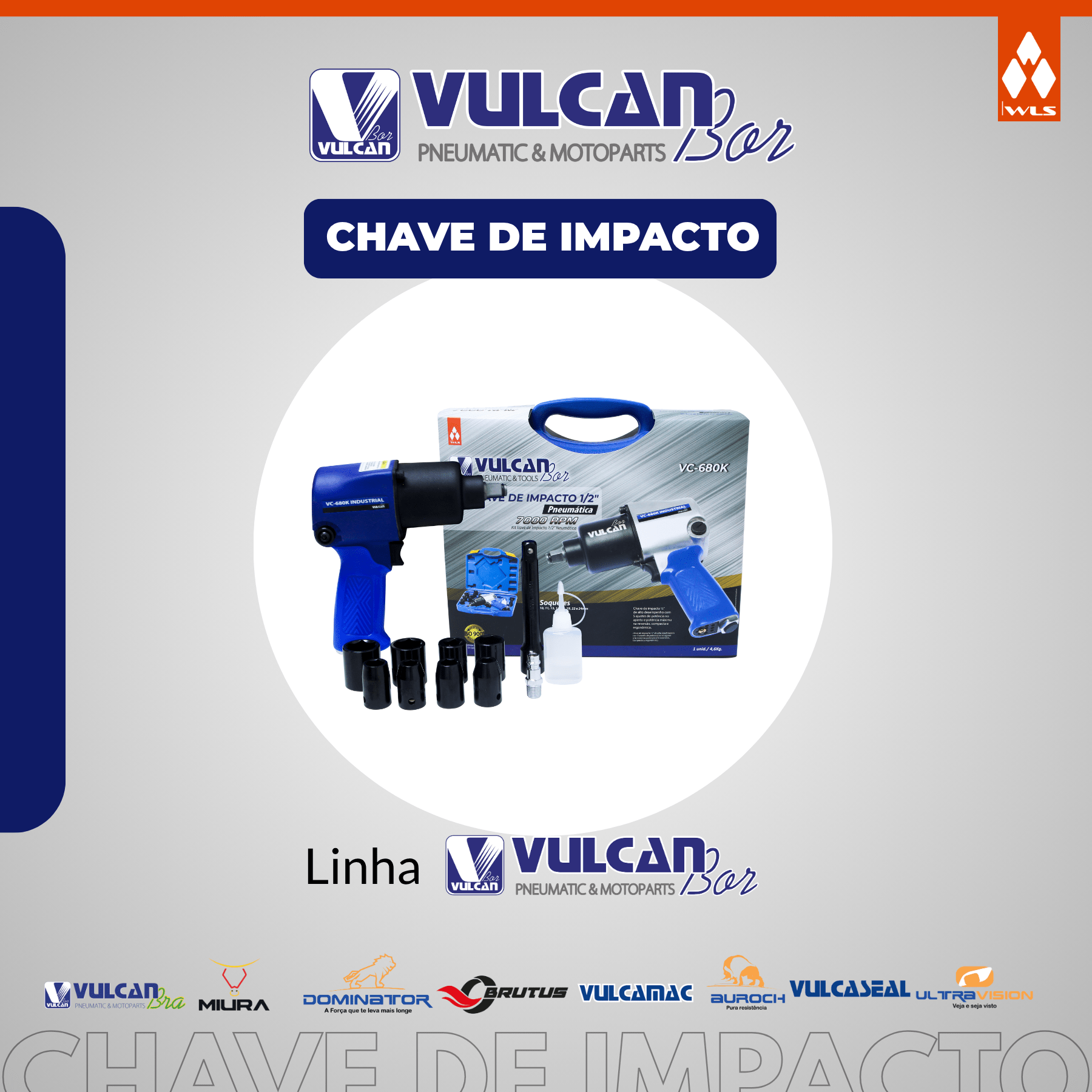 CHAVE DE IMPACTO INDUSTRIAL P/ AUTOS 1/2" C/ KIT DE SOQUETES - TORQUE 680NM